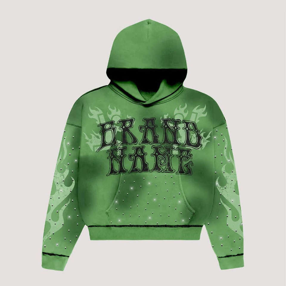 เสื้อฮู้ดดี้ปักลาย Distress สไตล์สตรีทแวร์ พิมพ์ลายดิจิทัล แต่งคริสตัลเรียบง่าย ผ้าคอตตอนผสม