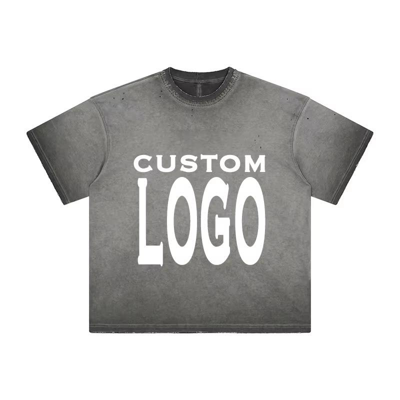 เสื้อยืดผู้ชายลายครอปซักเสื้อแบบกรดเสื้อยืดผ้าฝ้ายฟอกสีแบบวินเทจฟอกสี100%