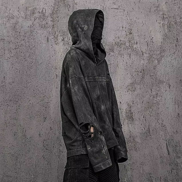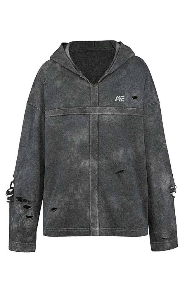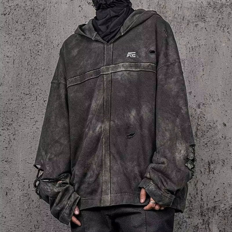 เสื้อฮู้ดดี้ทรงหลวมแบบยูนิเซ็กซ์ ล้างสีแบบดิสเทรส | เสื้อสเวตเชิ้ตวินเทจแบบขาดๆ | เสื้อฮู้ดดี้สตรีทแวร์ไซส์ใหญ่ขายส่ง