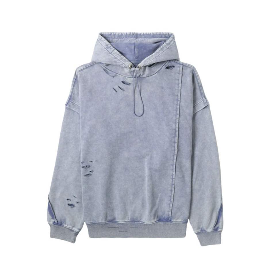 เสื้อฮู้ดซิปผู้ชายสไตล์วินเทจ ลวดลายย้อมสีแบบ Distressed Acid Wash ผ้าฝ้าย 100% น้ำหนักเบา ทรงโอเวอร์ไซส์ สตรีทแวร์ ตกแต่งด้วยคริสตัล เหมาะสำหรับฤดูใบไม้ร่วง