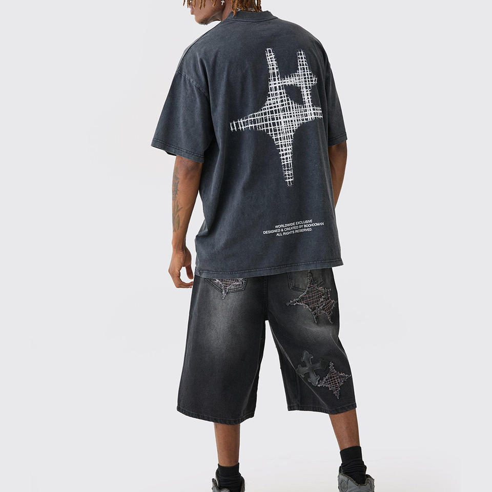 เสื้อยืดผ้าซักสีแอซิดใส่สบายสไตล์วินเทจสำหรับเขาหรือเสื้อสไตล์สตรีทผ้าคอตตอน100%