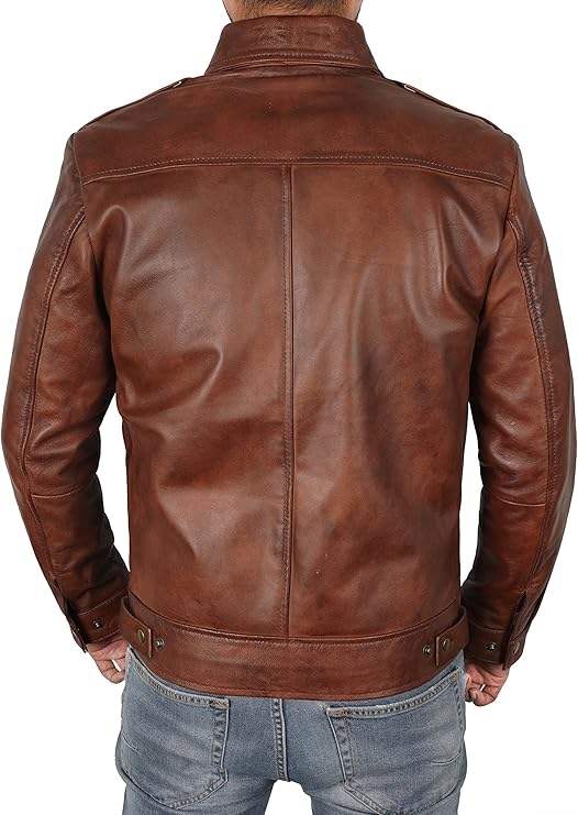 สีดำสำหรับผู้ชายแจ็คเก็ตขี่จักรยานหนังแกะคอปกสีน้ำตาลวินเทจสำหรับผู้ชาย tecchnics ย้อมธรรมดา