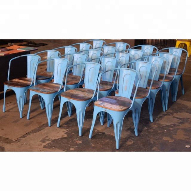 เก้าอี้ร้านอาหาร คาเฟ่ สไตล์อินดัสเทรียล โมเดิร์น สีน้ำเงินแบบวินเทจ ทำจากโลหะ ซ้อนได้ ราคาประหยัด