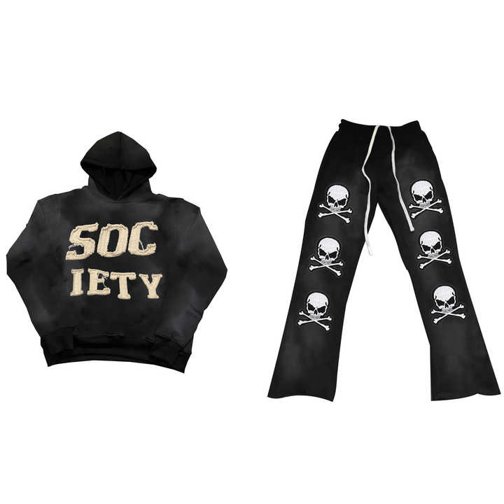 Distressed Cotton Embroidery Tracksuit for Adults Plus Size Breathable Winter Wear