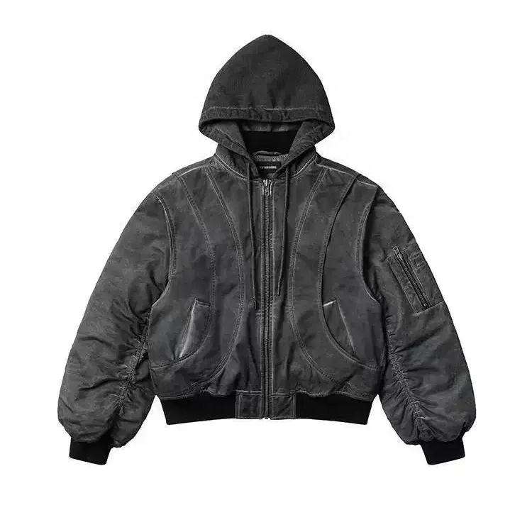 Distressed Embroidered Heavyweight Jacket Oversized Acid Washed Distressed Hoodie for Men