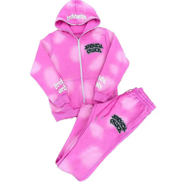 ชุดเซ็ตเสื้อฮู้ดดี้และกางเกงวอร์มปักลายสไตล์ Distressed ปี 2024 แบบสั่งทำพิเศษ ทรงขาบานซ้อน