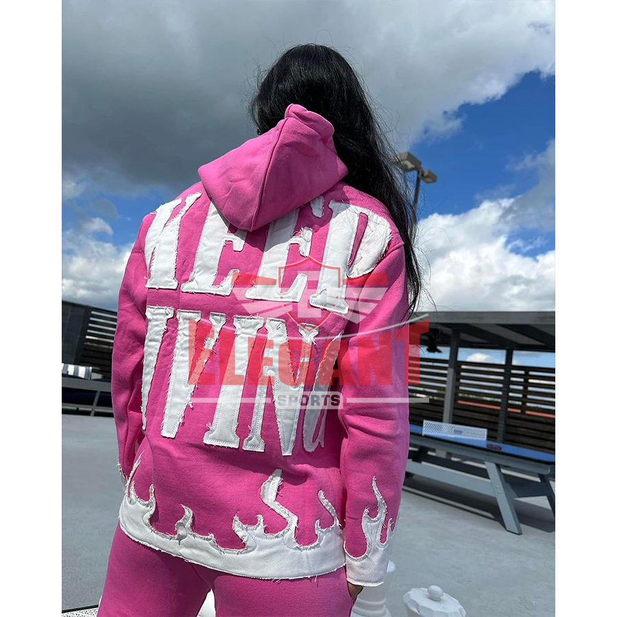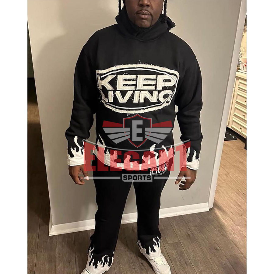 ชุดวอร์มปักลายสำหรับผู้ชายชุดวอร์มกางเกงขาบานแบบสวมหัวออกแบบได้ตามต้องการ