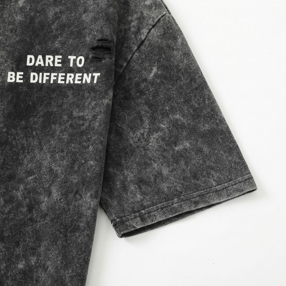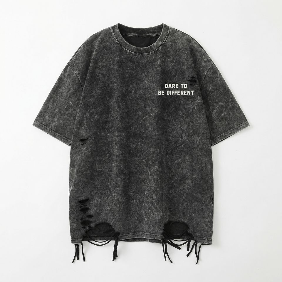 Distressed Oversized T Shirt Men "Dare To Be Different" Acid Wash Ripped Destroyed T shirt Streetwear OEM Manufacturer