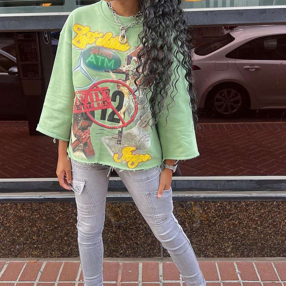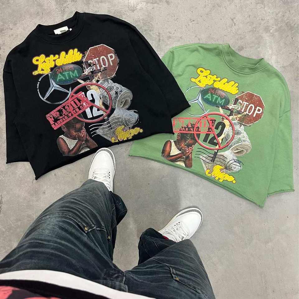 เสื้อยืดคอกลมทรงครอป พิมพ์ลายกราฟิก ผ้าฝรั่งเศสเทอร์รี่ 280gsm ผ้าฝ้าย 100% ขอบดิบแบบดิสเทรส พิมพ์ลายด้วยเทคนิค DTG สำหรับผู้ชาย | เป็นมิตรกับสิ่งแวดล้อม ขนาดใหญ่พิเศษ