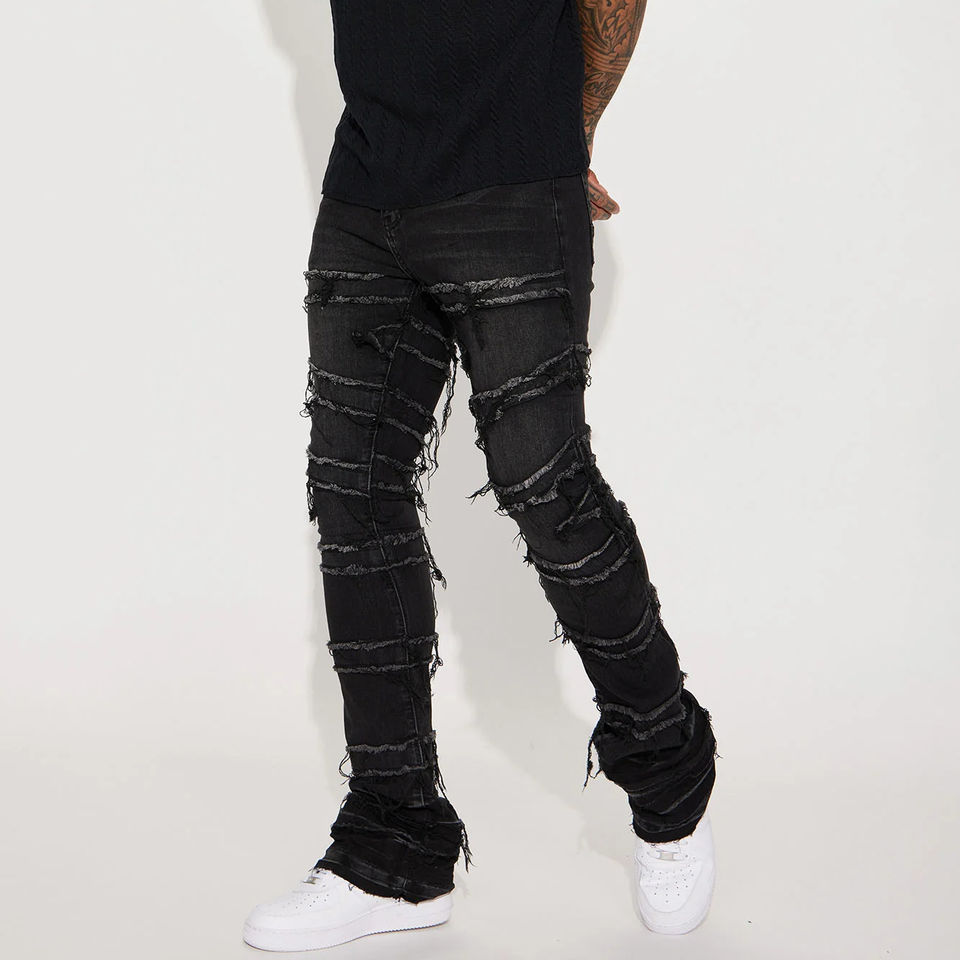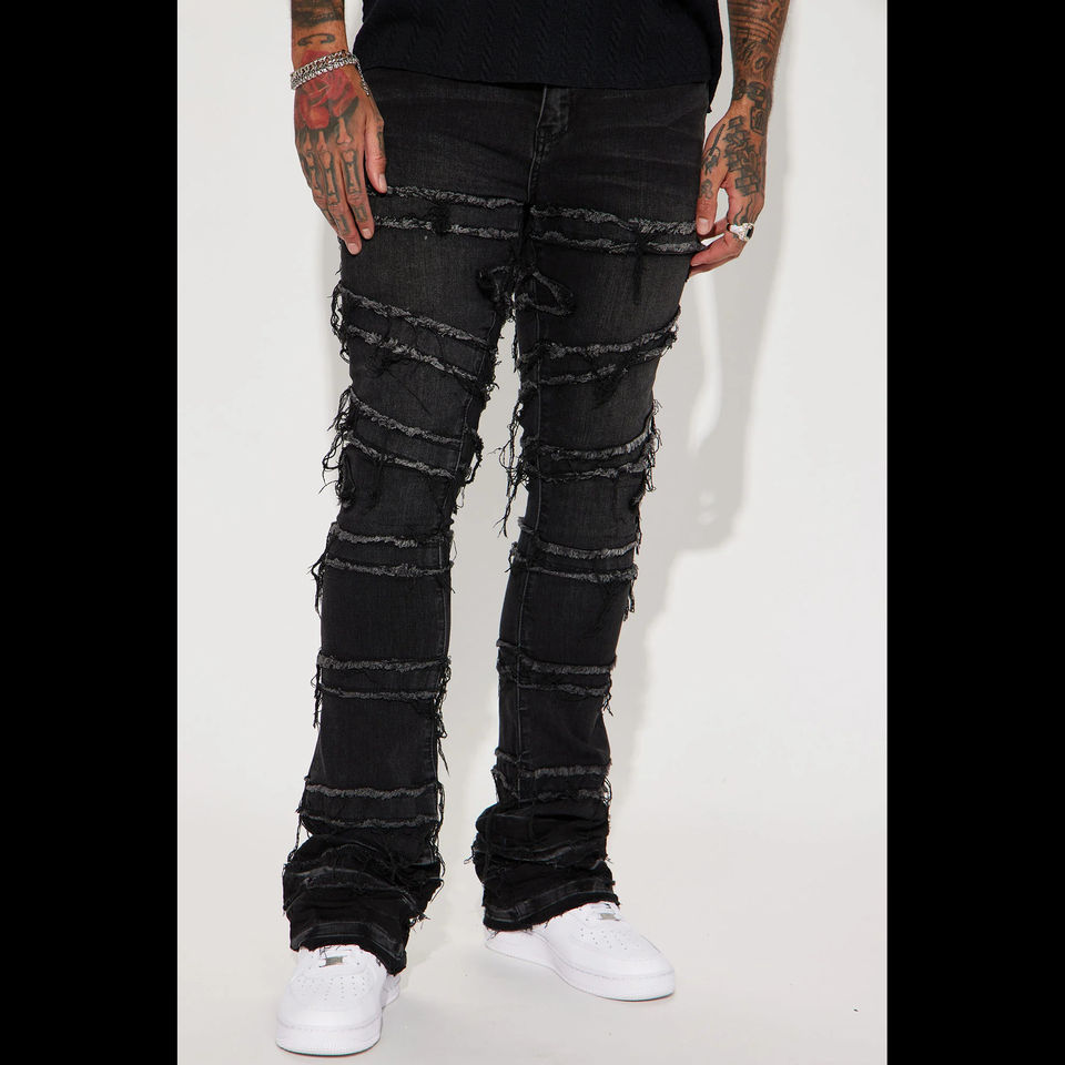 กางเกงยีนส์ขาบานสำหรับผู้ชาย, กางเกงยีนส์ขาบานสไตล์สตรีทเข้ารูปขาตรงมีซิปรูด