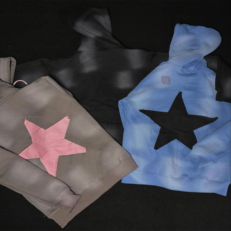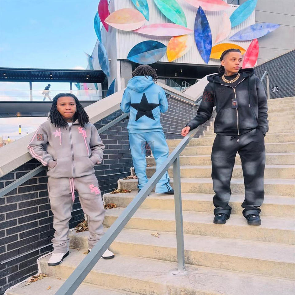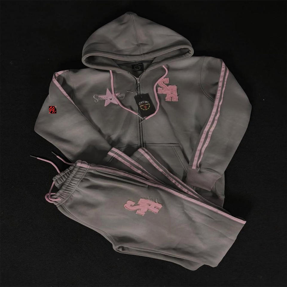 ชุดเสื้อฮู้ดและกางเกงทรงตรงมีซิปสำหรับซักเสื้อผ้าฝ้ายซักเป็นกรด430 450GSM