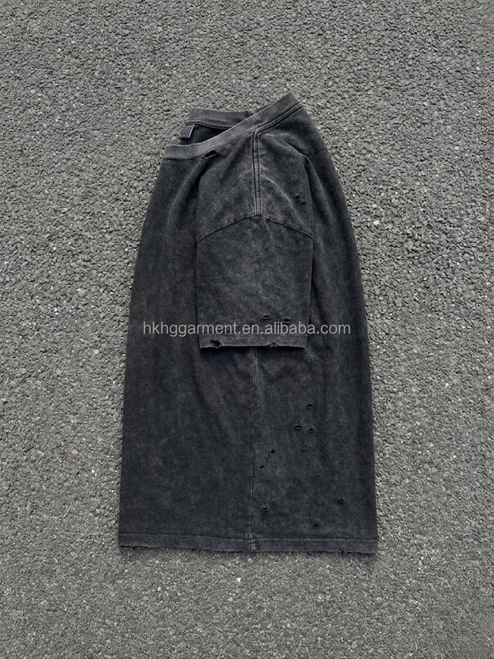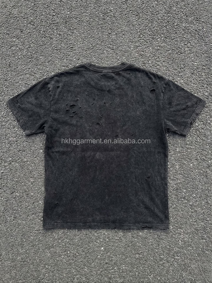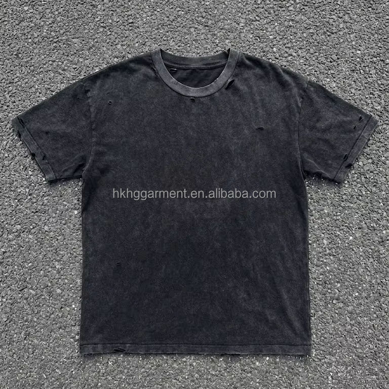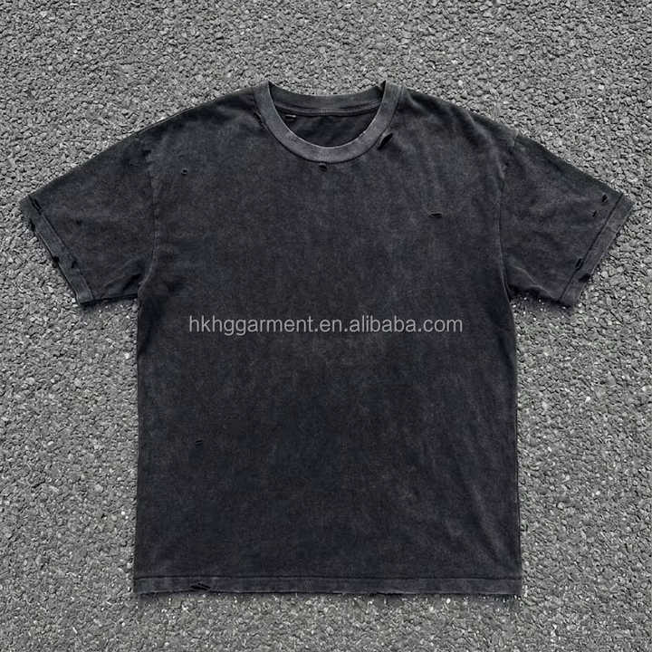 เสื้อยืดผู้ชายสไตล์วินเทจขาดๆ รุ่ยๆ ทรงโอเวอร์ไซส์ ผ้าฝ้ายสีขาวฟอก ลุคกรันจ์ สตรีทแวร์ ทรงบ็อกซี่