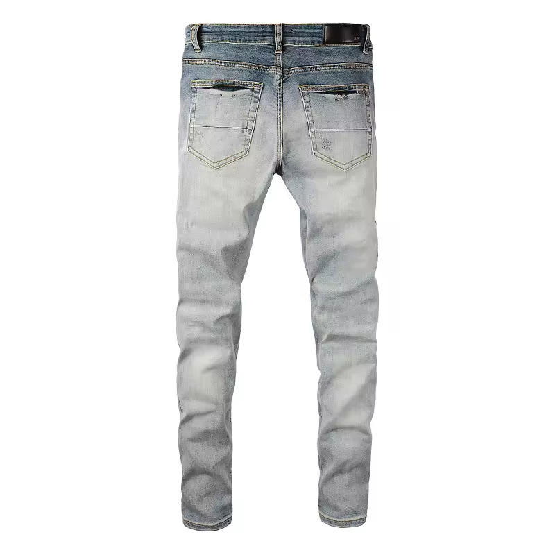 กางเกงยีนส์ทรงสกินนี่สองสีสำหรับผู้ชาย ดีไซน์ขาดเซอร์ๆ พร้อมฟอกสีสไตล์เดนิม สำหรับหนุ่มๆ สไตล์สตรีทแวร์