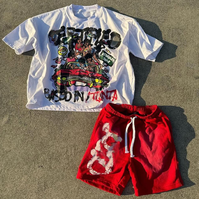 เสื้อยืดกราฟิกผู้ชายสไตล์วินเทจแบบมีโลโก้สั่งทำพิเศษ เนื้อผ้าฝ้ายระบายอากาศได้ดี หนานุ่ม ใส่ได้ทั้งชายและหญิง พร้อมกางเกงขาสั้นผ้าซักล้าง ชุดลำลองสำหรับฤดูร้อน