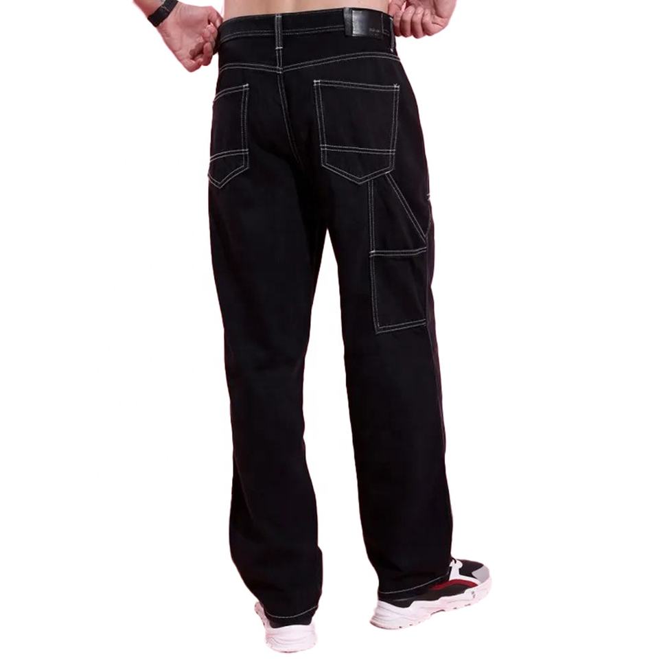 กางเกงยีนส์ทรงตรงสไตล์วินเทจสำหรับผู้ชายทรงหลวมมีหลายกระเป๋าซักขาวดำไซส์ใหญ่พิเศษทรงสลิมฟิต