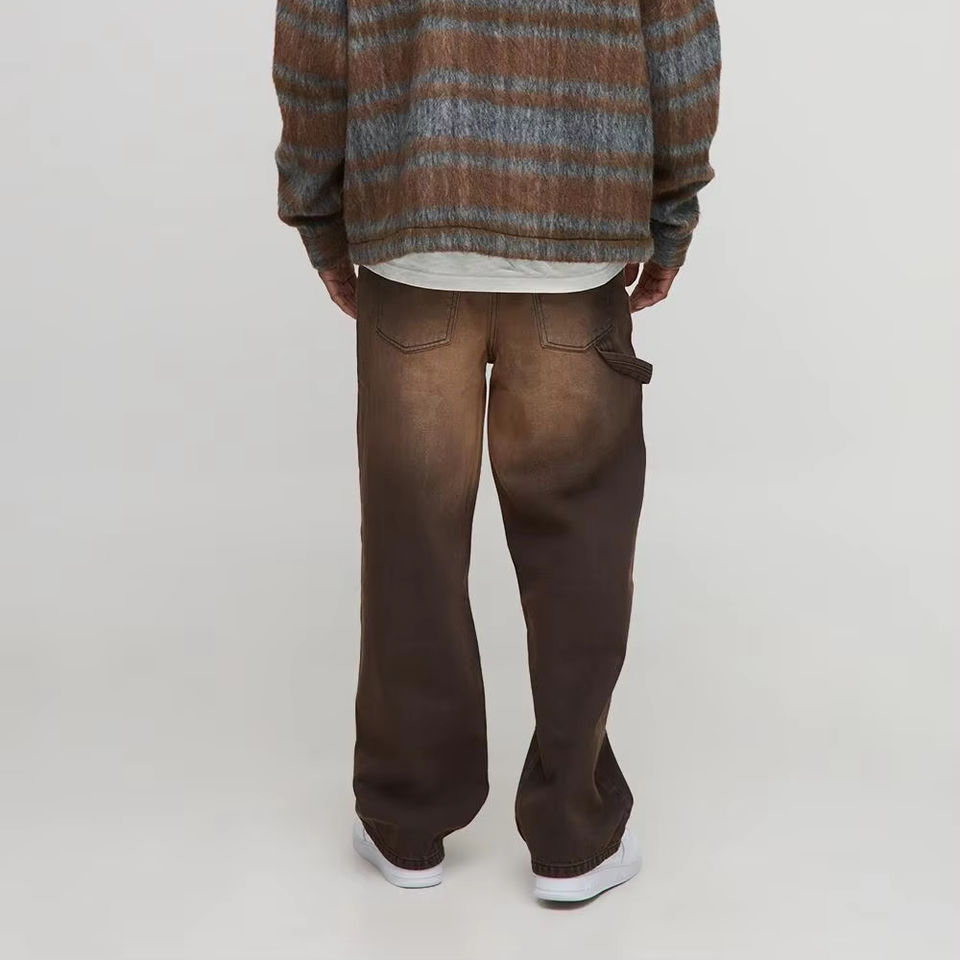 กางเกงยีนส์ชายทรงตรงทรงหลวมสไตล์วินเทจซักได้แนวสตรีทแวร์จากโรงงาน