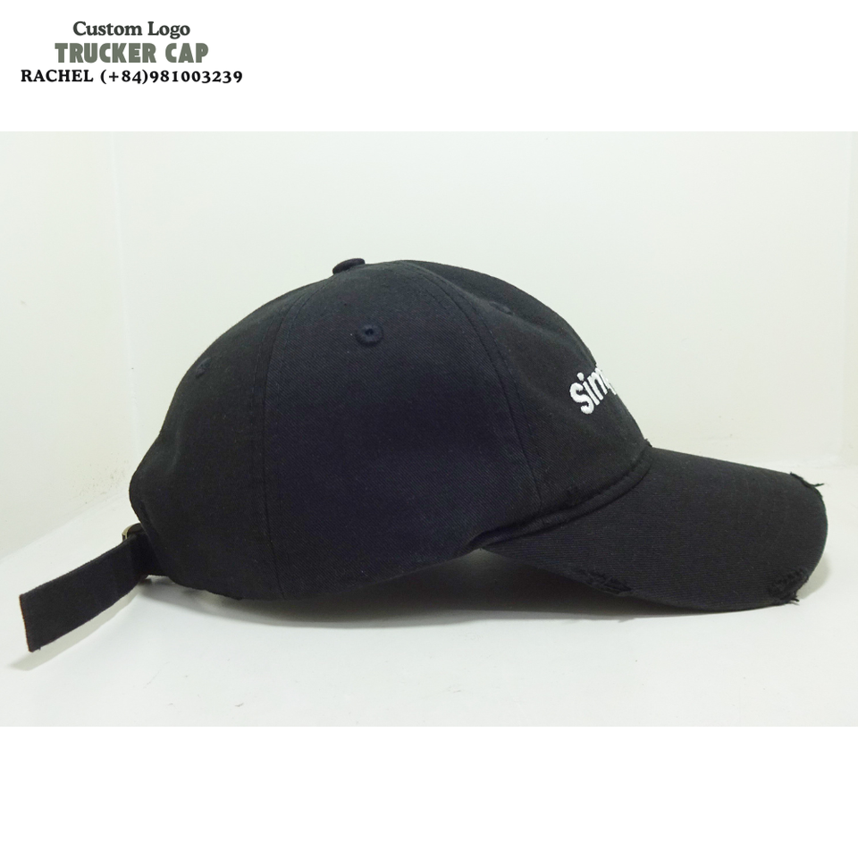 หมวกเบสบอลซักได้ทำจากโลหะมี6ชิ้นหมวกไม่มีโครงสร้างปัก2D gorras สีดำแบบปรับได้