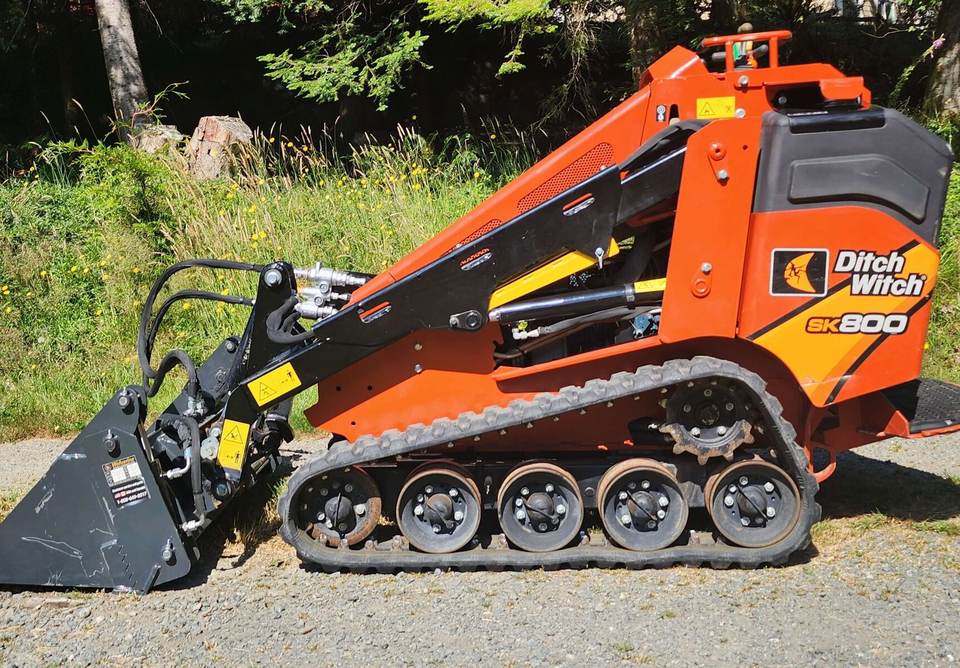 รถตักดินขนาดเล็ก Ditch Witch SK800 พร้อมบุ้งกี๋เรียบขนาด 44 นิ้ว เครื่องยนต์ Kubota D1105 24.8 แรงม้า สภาพใช้งานแล้ว พร้อมชิ้นส่วนเครื่องยนต์หลัก