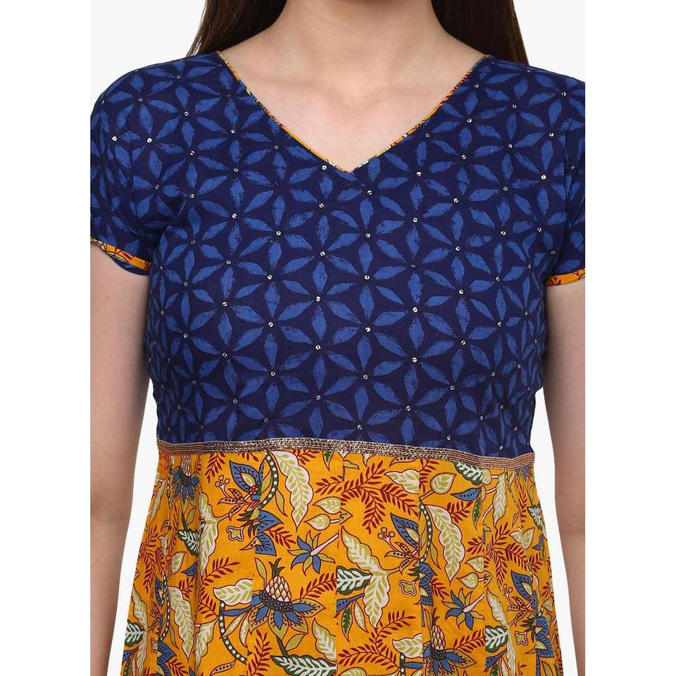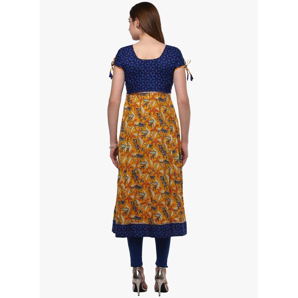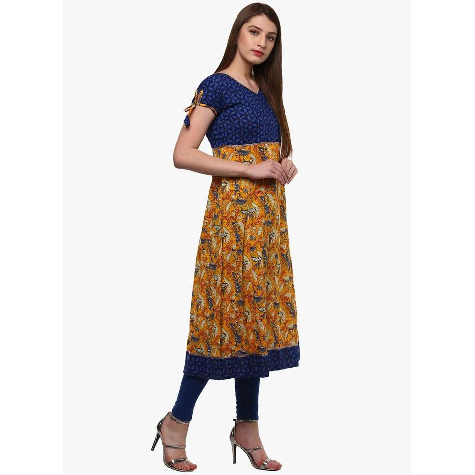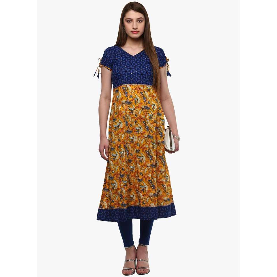 Divena anarkali pakistani สีฟ้าและมัสตาร์ดเสื้อผ้าสไตล์ชนเผ่า georgette และวัสดุสนามหญ้าเย็บ salwar kameez