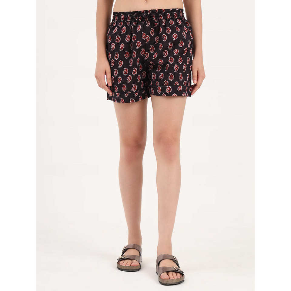 Divena กางเกงขาสั้นผ้าฝ้ายพิมพ์ลาย Paisley สีดำสำหรับผู้หญิง