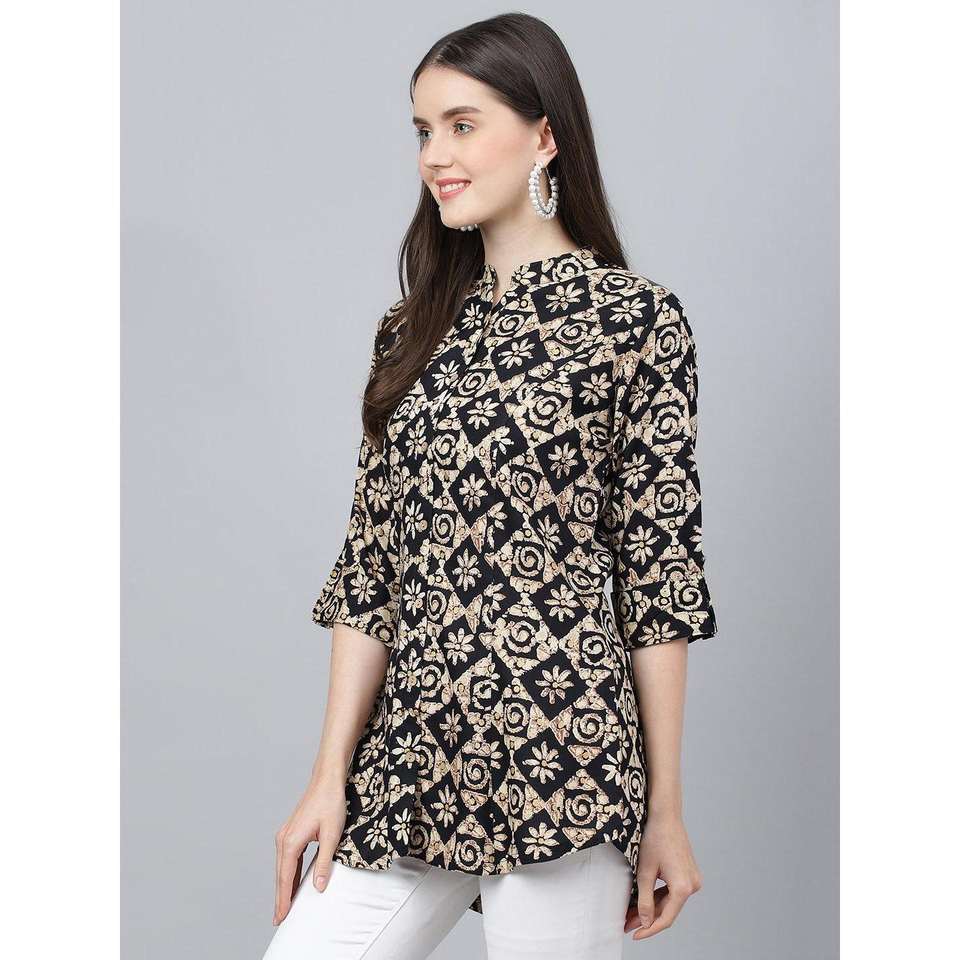 Divena เสื้อทรงเอไลน์ผ้าเรยอนสีดำพิมพ์ลายดอกไม้สำหรับผู้หญิงเสื้อทรงเอไลน์ผ้าไหมสไตล์วินเทจทรงหลวม XL สำหรับฤดูใบไม้ผลิฤดูร้อนฤดูใบไม้ร่วง