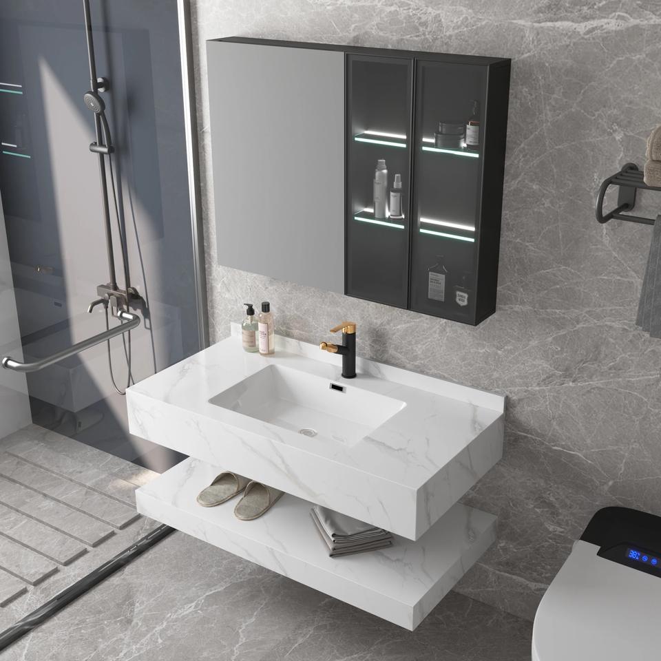 หินพื้นผิวห้องน้ำกันน้ำหรูหราเคลือบเงาทนทานปรับแต่งได้หลากหลายอพาร์ทเมนต์วิลล่า Lavabo