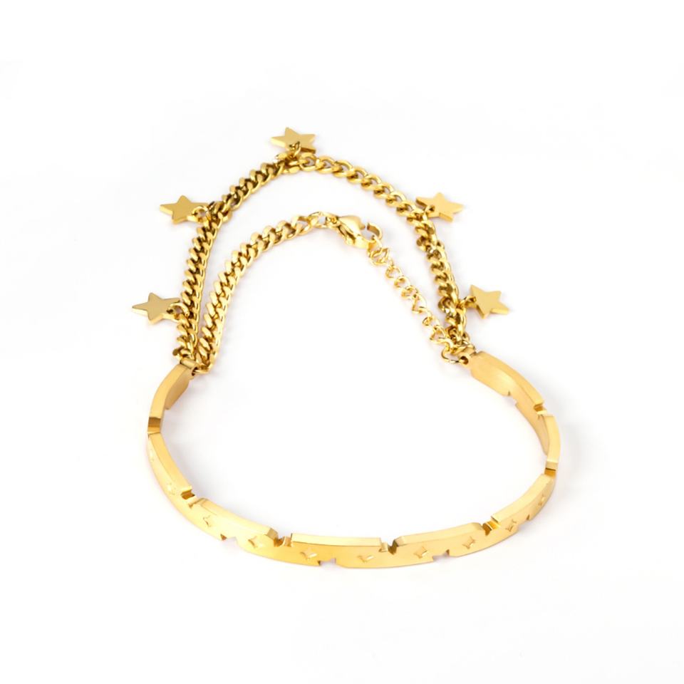 สินค้าหลากหลายสไตล์ ผลิตภัณฑ์สแตนเลสชุบทอง 18K สร้อยข้อมือแบบโซ่คู่และแบบเชื่อมต่อ เครื่องประดับ