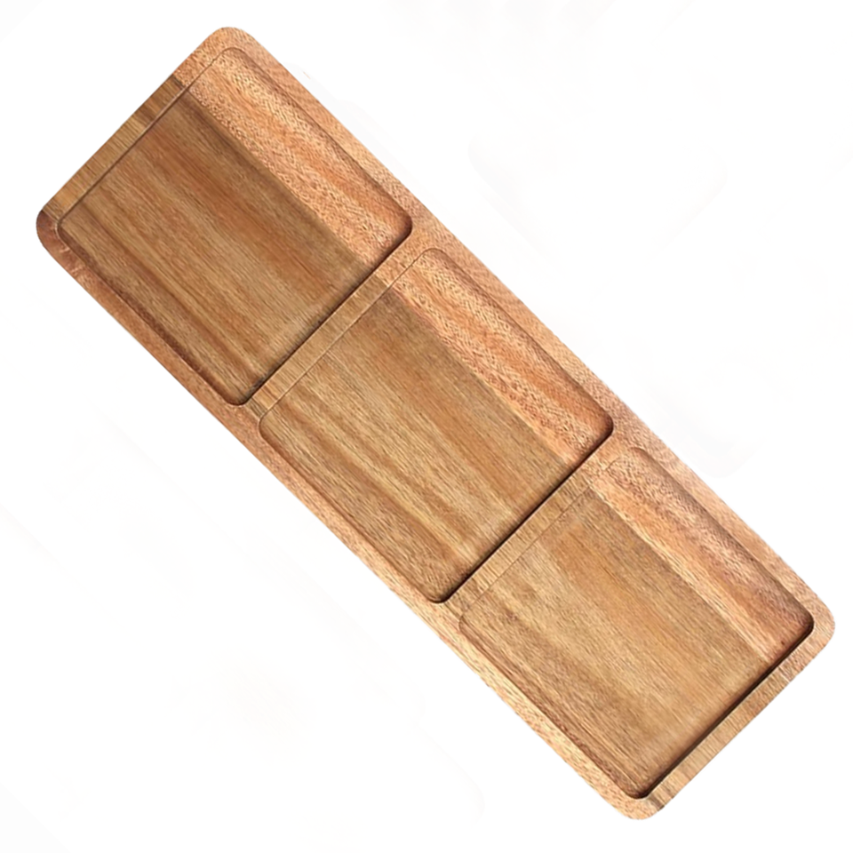 ถาดเสิร์ฟแบ่งไม้อะคาเซียและจาน