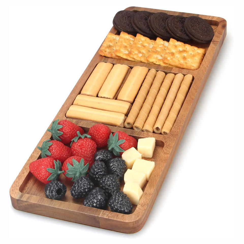 จานไม้อะคาเซียแบ่งอาหารถาดทรงสี่เหลี่ยมผืนผ้าสำหรับเค้กขนมชีสขนมปังใช้ที่บ้านหรือโต๊ะรับประทานอาหาร