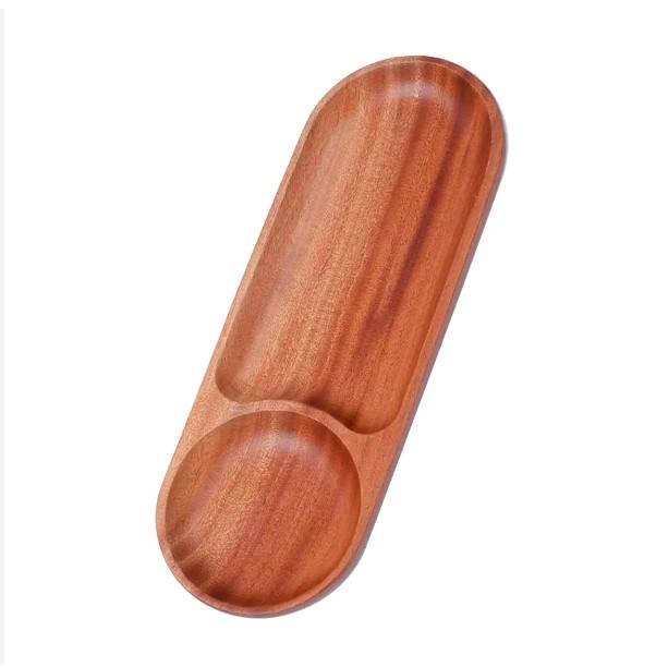 ถาดเสิร์ฟไม้กระถินณรงค์แบบแบ่งช่อง ปลอดภัยต่อสิ่งแวดล้อม ใช้กับเครื่องล้างจานได้ ขั้นต่ำ 100 ชิ้น สำหรับเสิร์ฟสเต็ก ของว่าง ของหวาน เค้ก