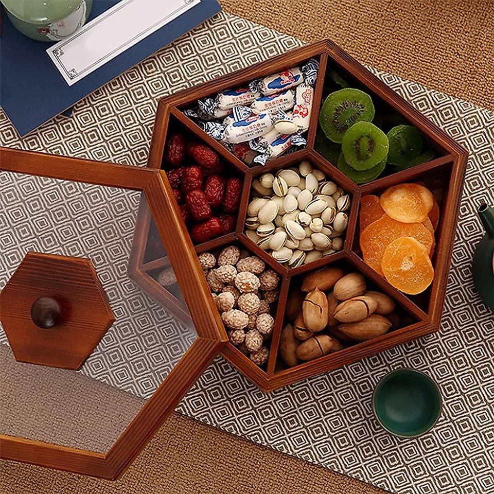 ถาดไม้แบ่งช่องพร้อมฝาปิดถาดเสิร์ฟขนมถาดใส่ผลไม้แห้งช่องเก็บขนมขบเคี้ยว