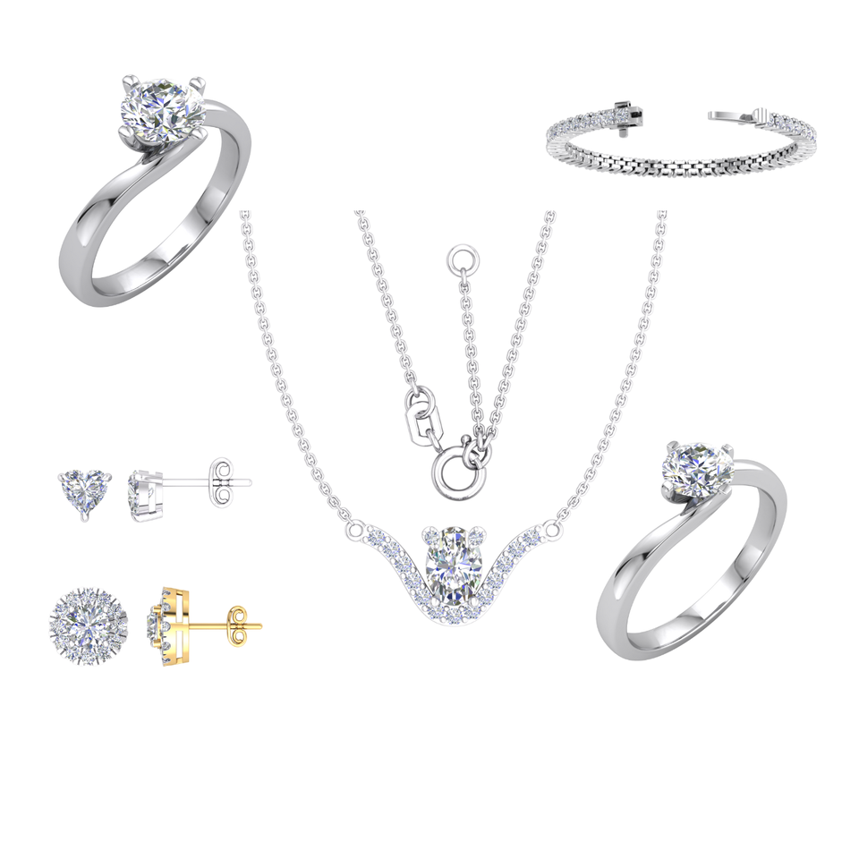 เครื่องประดับเพชรคุณภาพสูงจาก Divya Creations สำหรับผู้หญิง เพชรเพาะเลี้ยง 925 เงินแท้ ชุบโรเดียม หรูหรา น้ำหนัก 3.08 กะรัต รับรองโดย IGI สี E ทรงบริลเลียนท์คัท