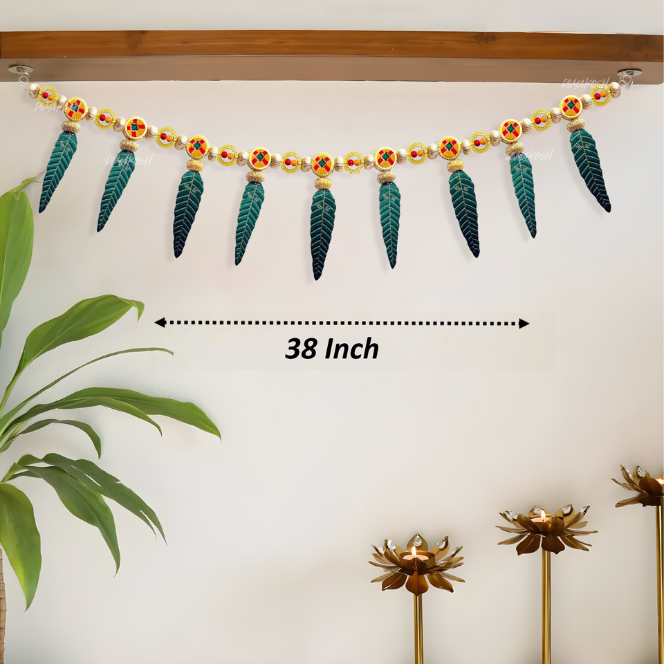 Divyakosh torans สำหรับประตูทางเข้าหลักใบ Toran | Toran สำหรับตกแต่งบ้าน/วัด, ใบสีเขียว bandhanwar ขนาด-38นิ้ว