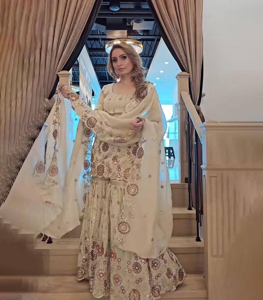 ชุดเดรสผ้าไหมจอร์เจียต์ปักลายดีไซน์เนอร์สำเร็จรูปสำหรับเทศกาลดีวาลี ชุดอินเดียแบบ 3 ชิ้น ทรงเข้ารูป ความยาวปานกลาง เหมาะสำหรับงานแต่งงานในฤดูหนาวและงานปาร์ตี้