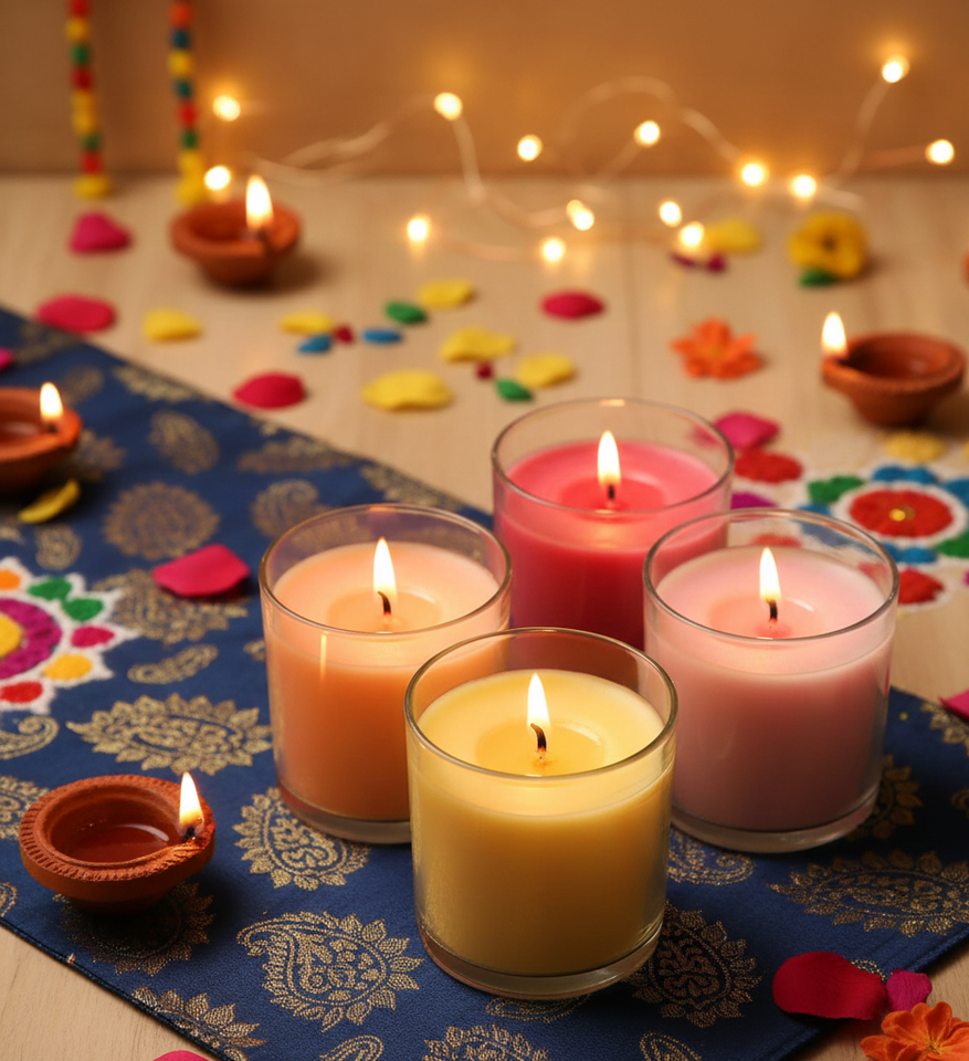 ชุดเทียนหอมกลิ่นหอมในโถแก้วจากขี้ผึ้งถั่วเหลืองสีสันสดใสสำหรับเทศกาล Diwali เป็นมิตรกับสิ่งแวดล้อม เหมาะสำหรับตกแต่งบ้านและเป็นของขวัญในวันฮาโลวีนและคริสต์มาส