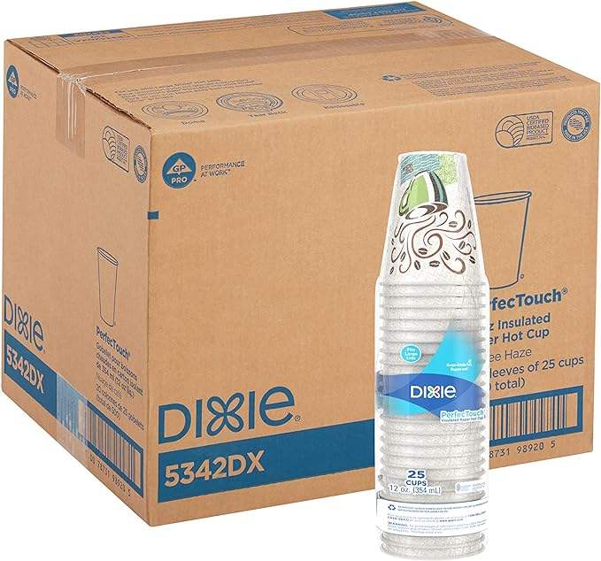 Dixie PerfecTouch 12 ออนซ์ฉนวนกระดาษถ้วยกาแฟร้อนโดย GP PRO (จอร์เจีย-แปซิฟิก), หมอกกาแฟ, 5342DX, 500 จํานวน