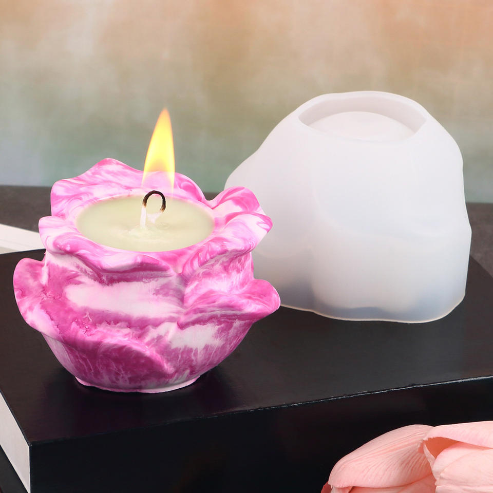 แม่พิมพ์ซิลิโคนฐานวางเทียนหอมแบบทำมือรูปกุหลาบเชิงเทียนแบบทำมือสำหรับบ้าน