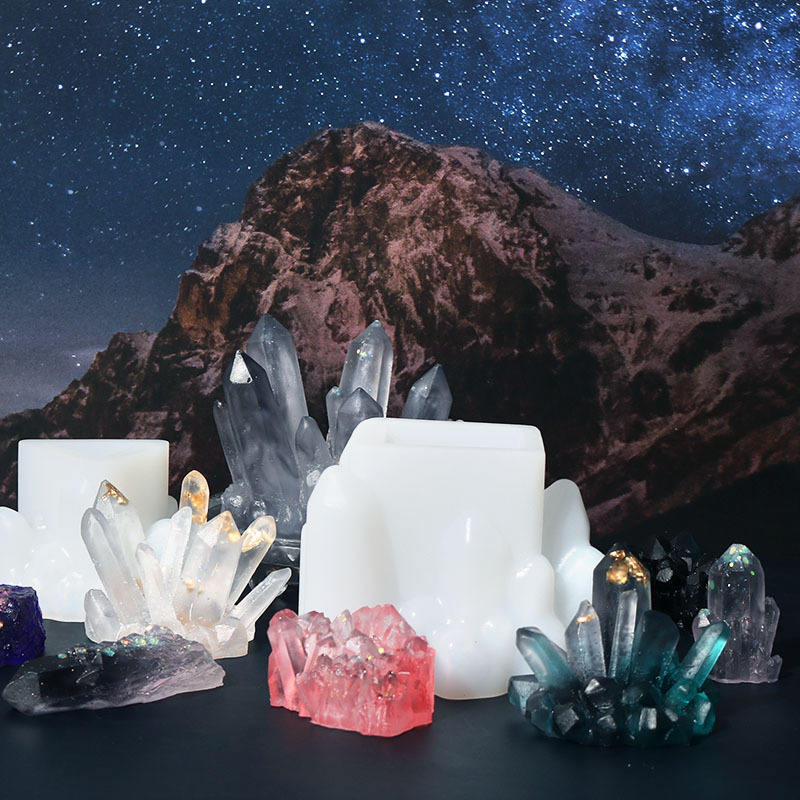 แม่พิมพ์ซิลิโคนแบบใช้กาวแบบทำมือแม่พิมพ์แบบนิ่มสำหรับของเหลวคอลัมน์หินคริสตัล11ชิ้น