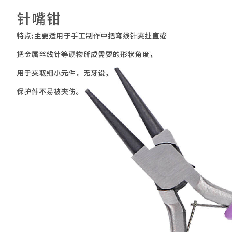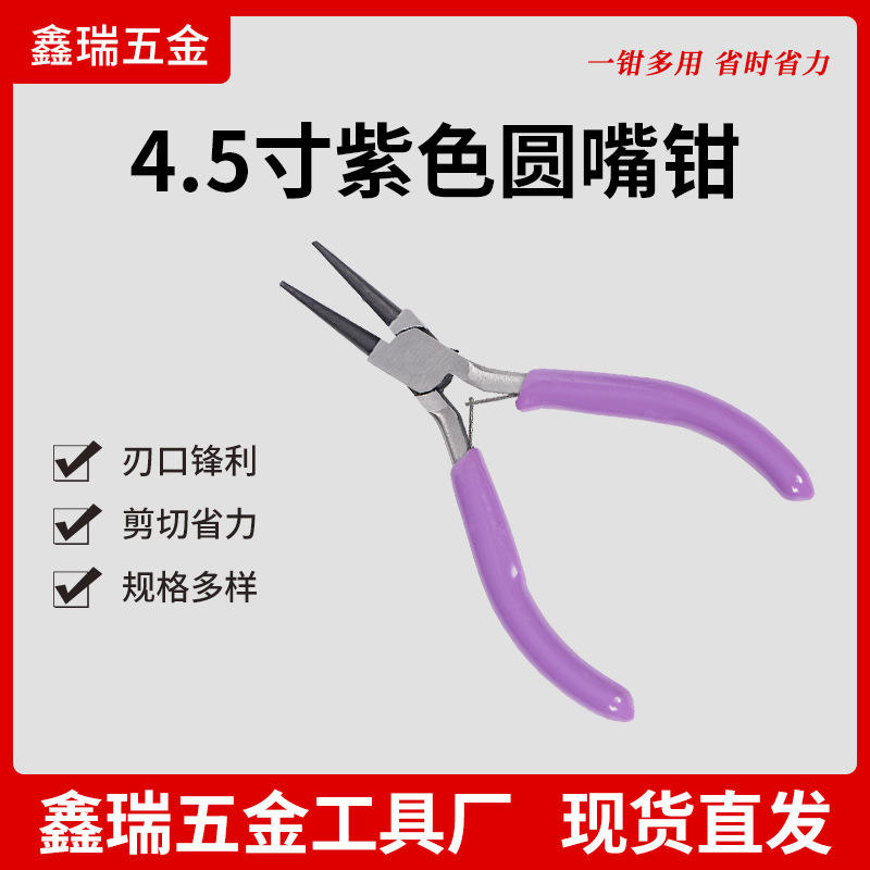 คีมปากกลม DIY ขนาด 4.5 นิ้ว สีพลัม ผลิตจากเหล็กโครเมียมวาเนเดียม ปากเรียบ พร้อมสปริงในตัว อเนกประสงค์