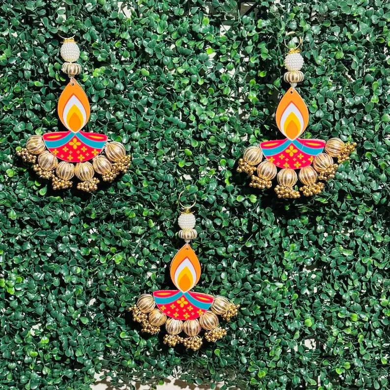 Diya Art Deco MDF Wood Wall Hanging Housewarming Gift Ganesha Temple Pichwai Backdrop Diwali Indian Wedding Decor Haldi Mehndi