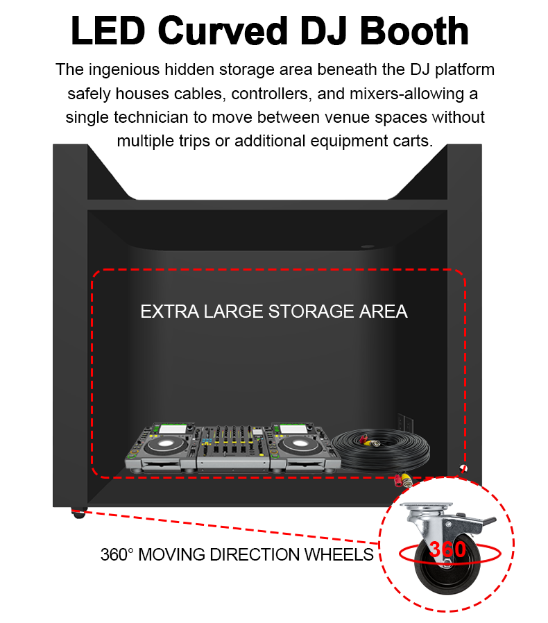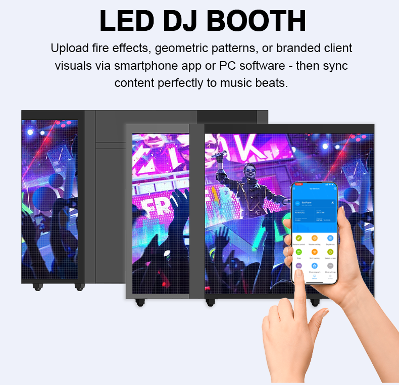 โต๊ะยืนสำหรับสถานีดีเจโต๊ะแบบพกพา LED หน้าจอแสดงผลบนผนังสำหรับ DJ