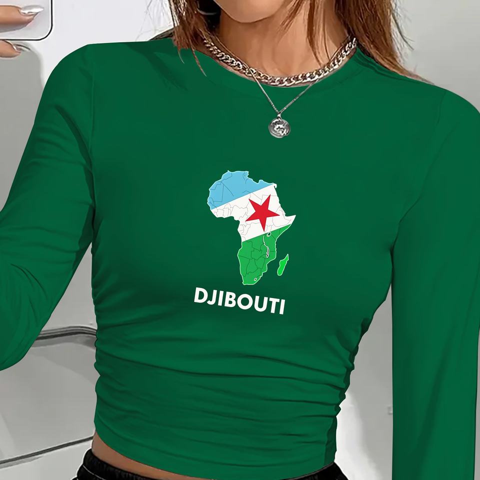เสื้อเชิ้ตแขนยาวผู้หญิงผ้าถักพิมพ์ลายธงชาติจิบูตีดีไซน์ Y2K