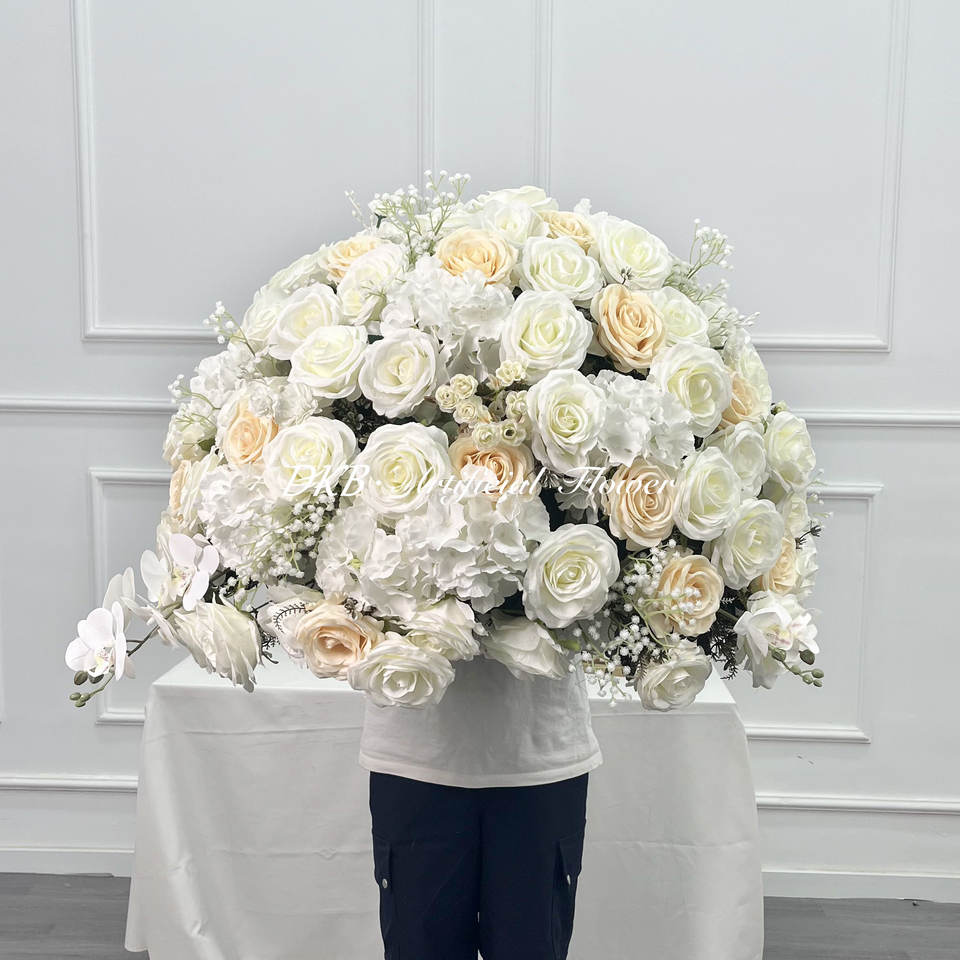 คีย์เวิร์ดของผลิตภัณฑ์:ลูกบอลดอกไม้ประดิษฐ์สำหรับตกแต่งโต๊ะในงานแต่งงานลูกบอลทำจากผ้าไหม