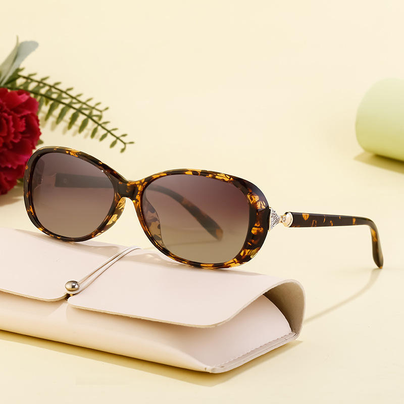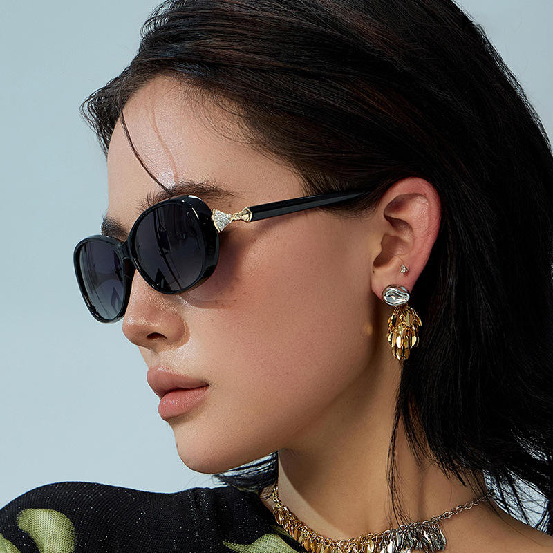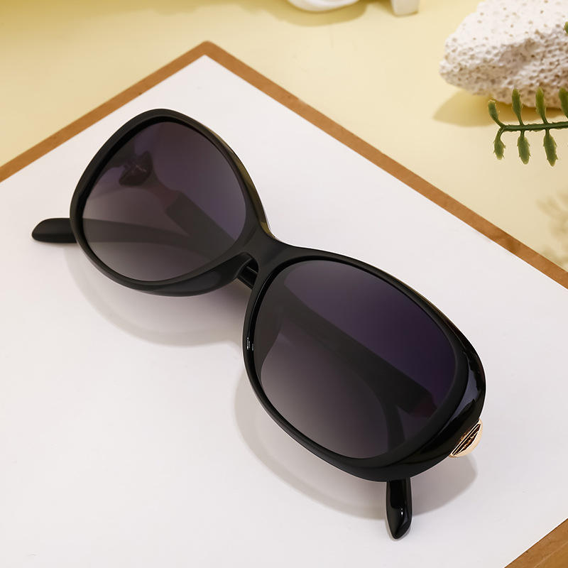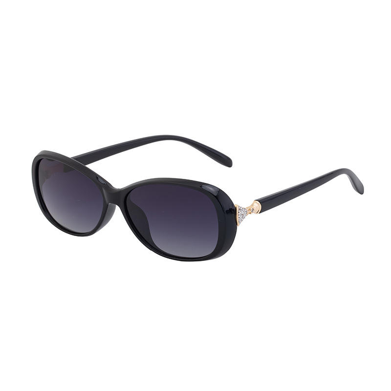 ดีแอล ดี 7520 แว่นกันแดดทรงวงรีสำหรับผู้หญิงกรอบโลหะ TAC เลนส์ยูวี 400 ป้องกันแสงแดดคลาส 2 สีดำ C1C3C4C5C9