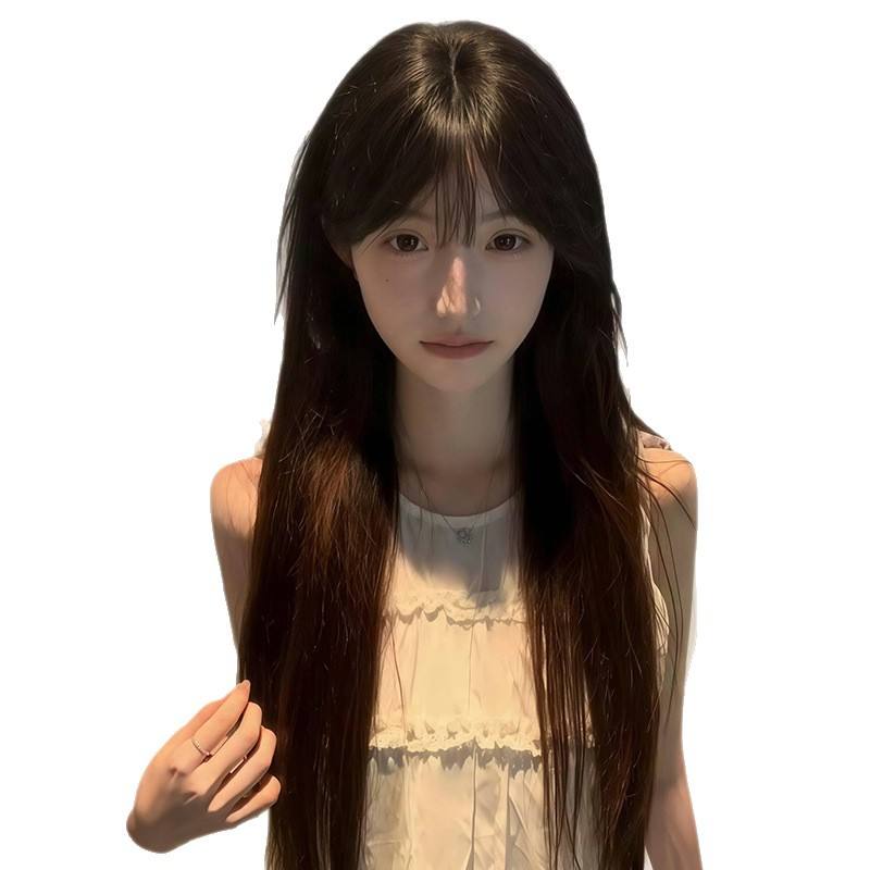 วิกผมยาวตรงแบบ Dm พร้อมหน้าม้าปัดข้าง ไรผมดูเป็นธรรมชาติ วิกผมทนความร้อนสูง สำหรับทุกรูปหน้า