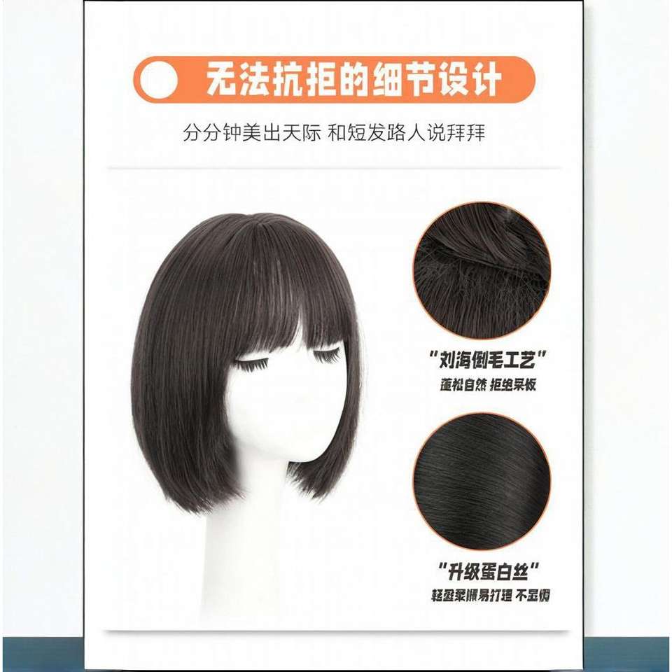 วิกผมผู้หญิงแบบเต็มศีรษะทรงบ๊อบสั้นตรง ทนความร้อนสูง เส้นผมธรรมชาติ ฐานลูกไม้โปร่งใส ปรับรูปหน้า สไตล์ฤดูร้อน