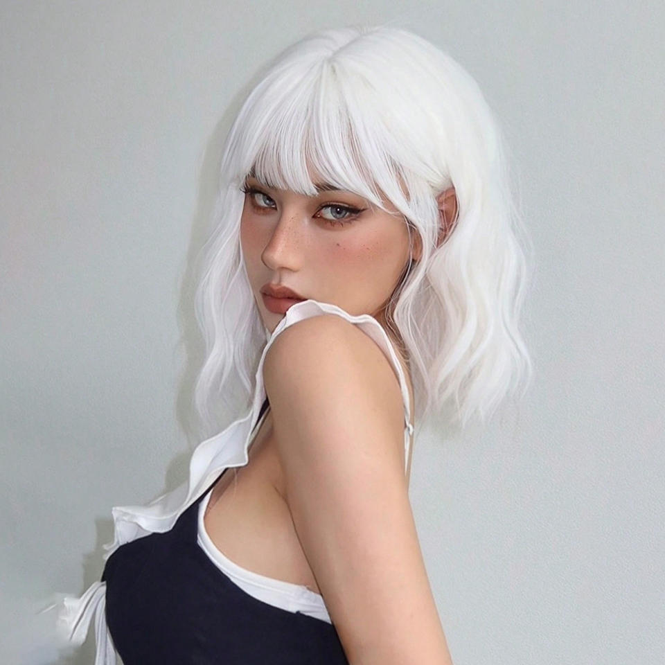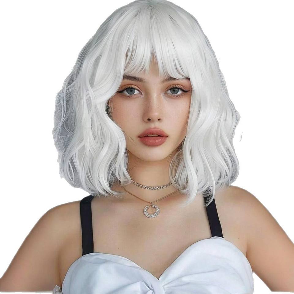 Dm28 Short Wavy Wig With Bangs 35cm Kanekalon Fiber Natural Hairline Transparent Lace For Women Any Face Shape