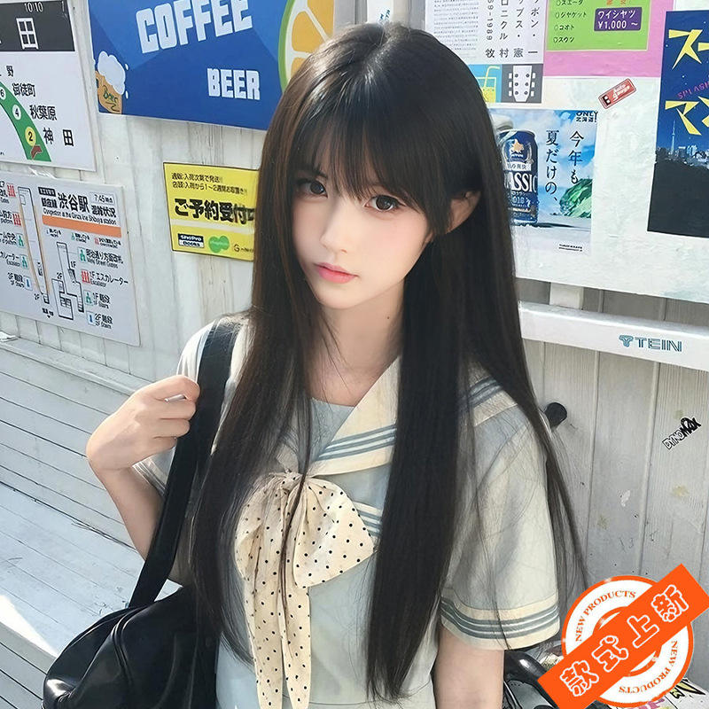 วิกผมยาวตรง Dm762 พร้อมหน้าม้าปัดข้าง ใยสังเคราะห์คาเนคาลอน เส้นผมธรรมชาติ ฐานลูกไม้โปร่งใส สำหรับสาวๆ สไตล์โลลิต้า JK
