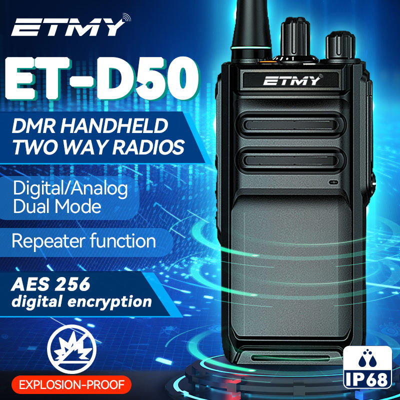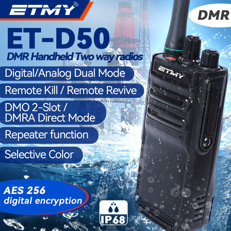 วิทยุสื่อสารดิจิตอลแบบพกพา DMR AES256 รหัสเข้ารหัส VHF UHF มาตรฐาน IP68 ระยะไกล รุ่น ETMY ET-D50