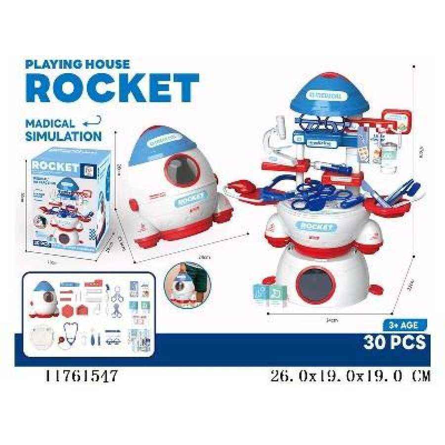 ชุดของเล่นบทบาทสมมุติหมอร็อคเก็ต 30 ชิ้น ของเล่นจำลองการแพทย์พลาสติกสำหรับเด็กอายุ 2-4 ปี